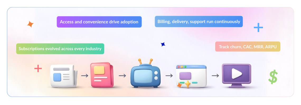 The evolution of the subscription model is a fascinating journey that mirrors technological and societal advancements: