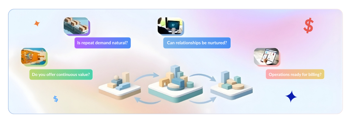 Here’s a practical framework to help you evaluate if the subscription model aligns with your business goals and offering: